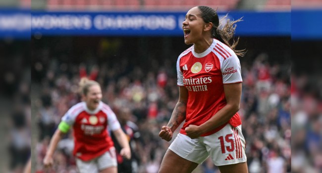 The French league leaders went ahead in the 18th minute at the Emirates Stadium when Jule Brand scored with the visitors’ only shot on target in the first half.