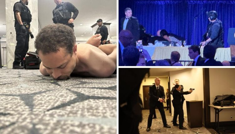 The Secret Service and other authorities swarmed the banquet hall as guests ducked under tables by the hundreds.