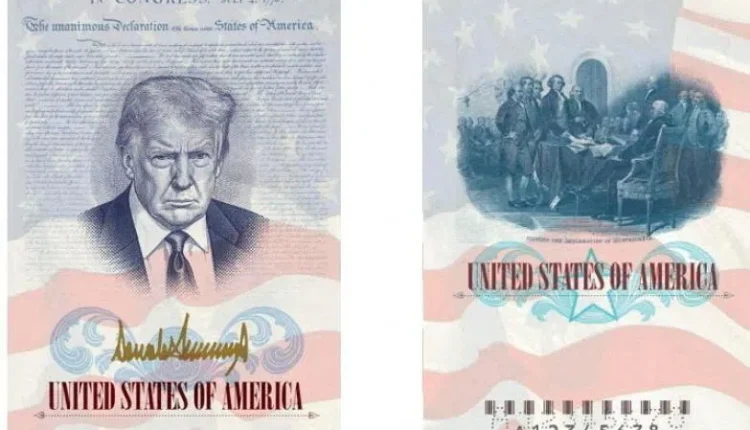 A Fox News article, reposted by a State Department spokesman, showed an image of Mr Trump on the passport imposed over the Declaration of Independence, with his signature underneath.